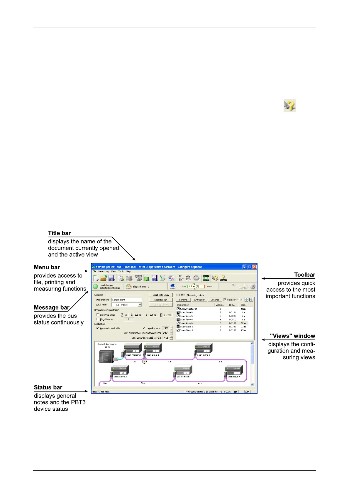 The graphical user interface of the PBT application software is divided into various areas (Fig. 3).