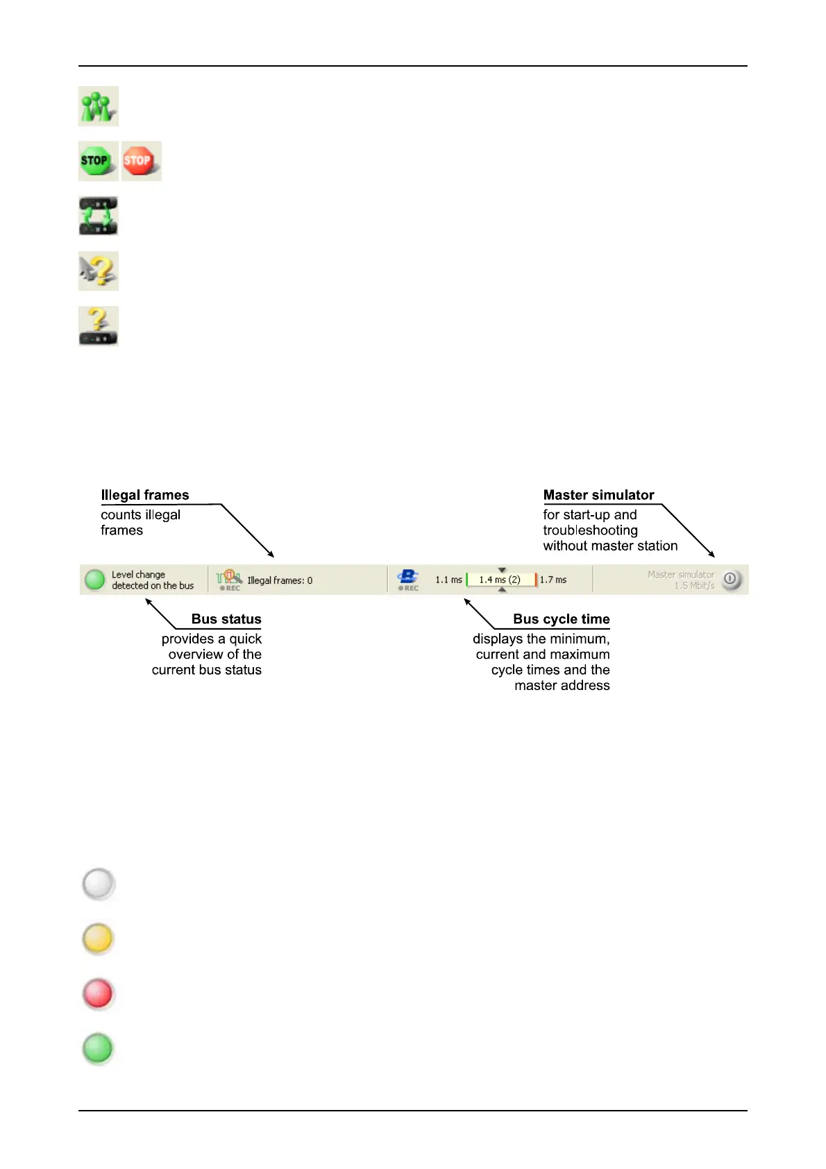 The bus status display consists of multicolor LED graphics and a description text. The LED changes its color
