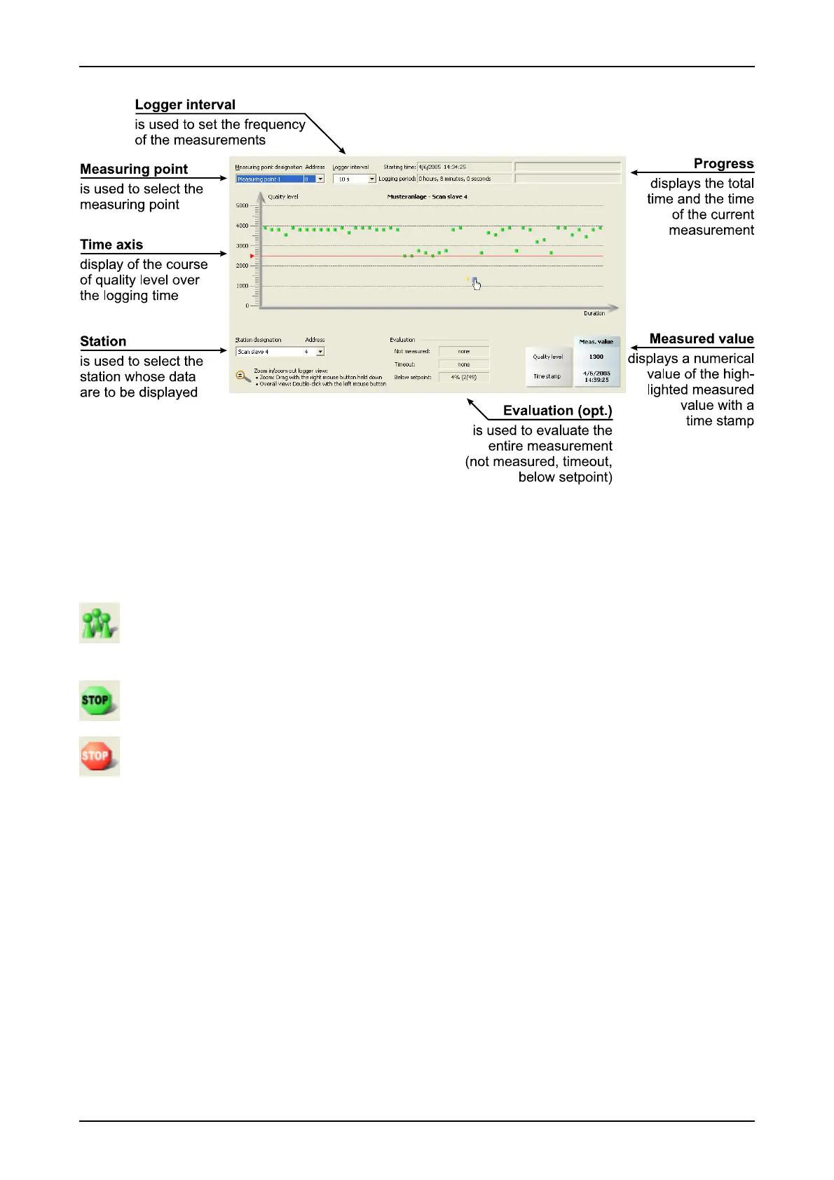 After switching to the "Quality Levels Logger" view ("View" menu or toolbar), you can control the measure-