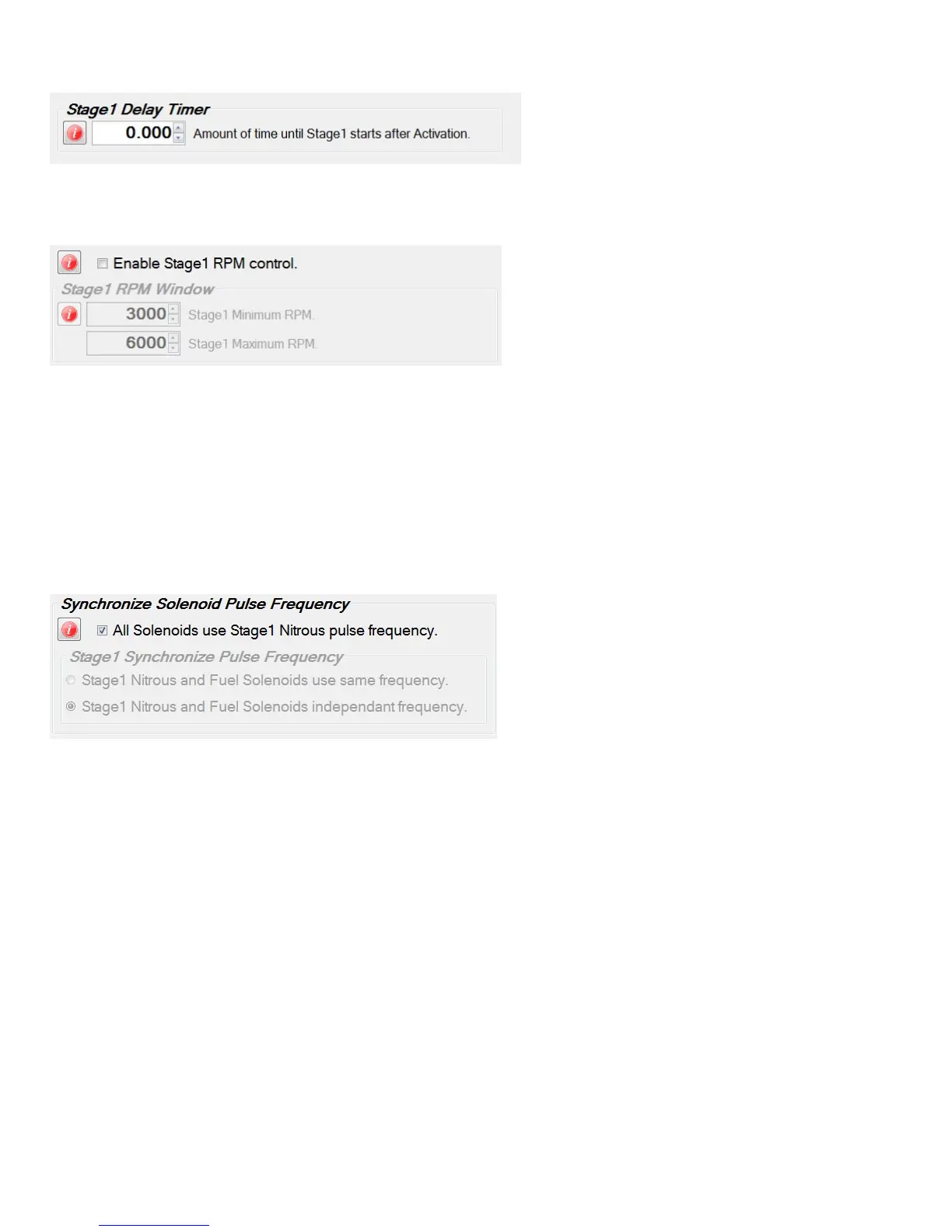 Stage1 Synchronize Pulse Frequency ‐ the Stage1 nitrous and fuel solenoids can be configured to funcon at the nitrous solenoid fre‐