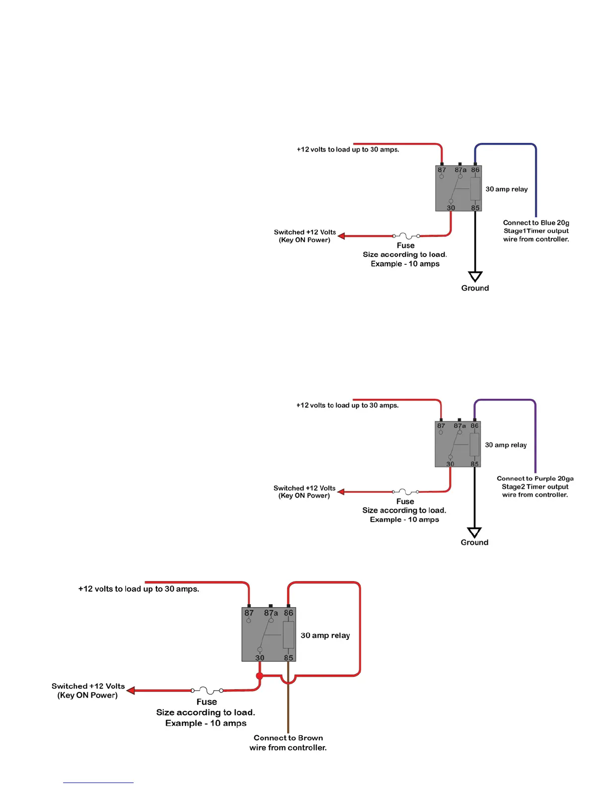 the off state. If your ignion and/or ignion ming controller is acvated by a +12 volt signal the 20ga Purple Stage2 Output wire can