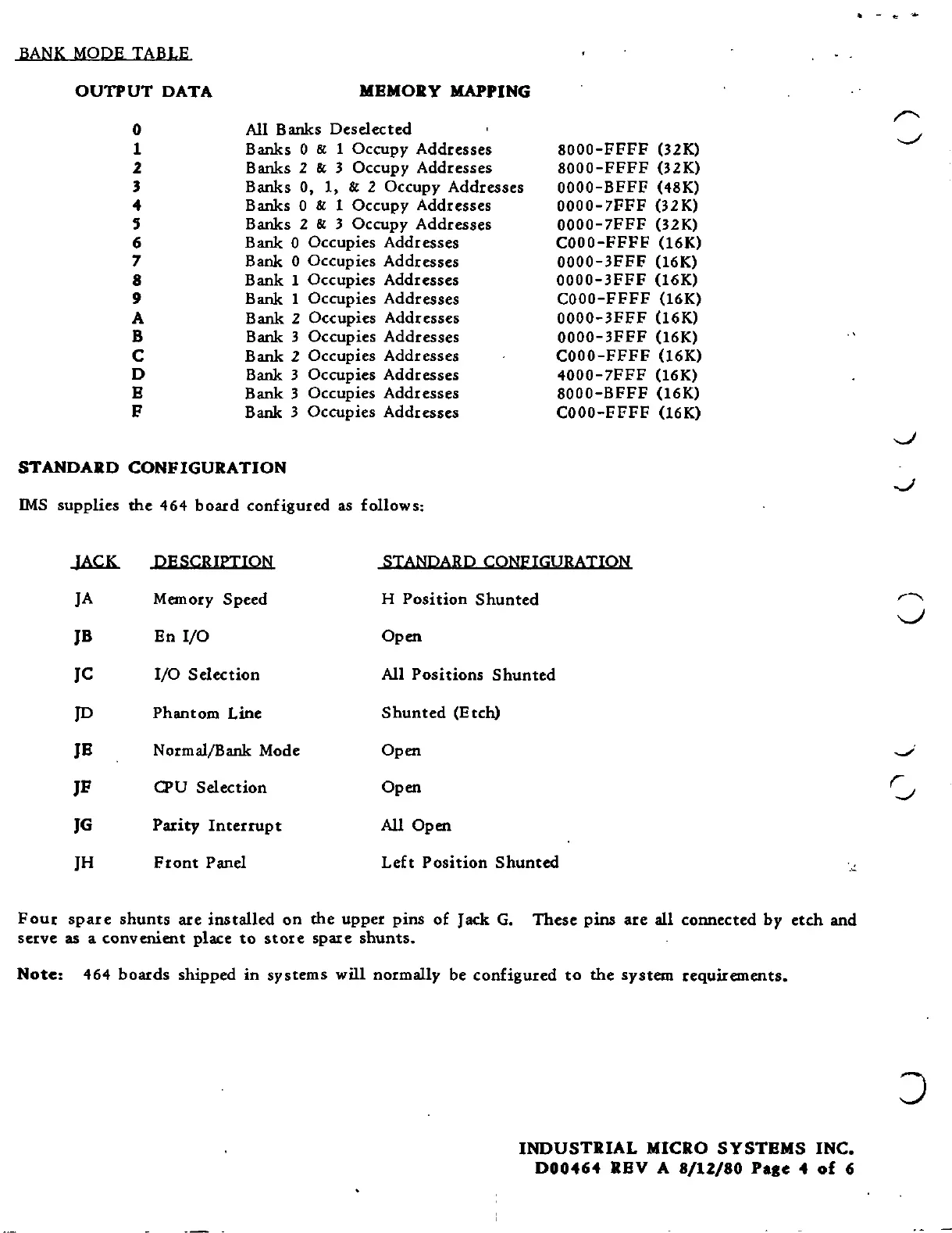 Industrial Micro Systems 464 - Standard Board Configuration