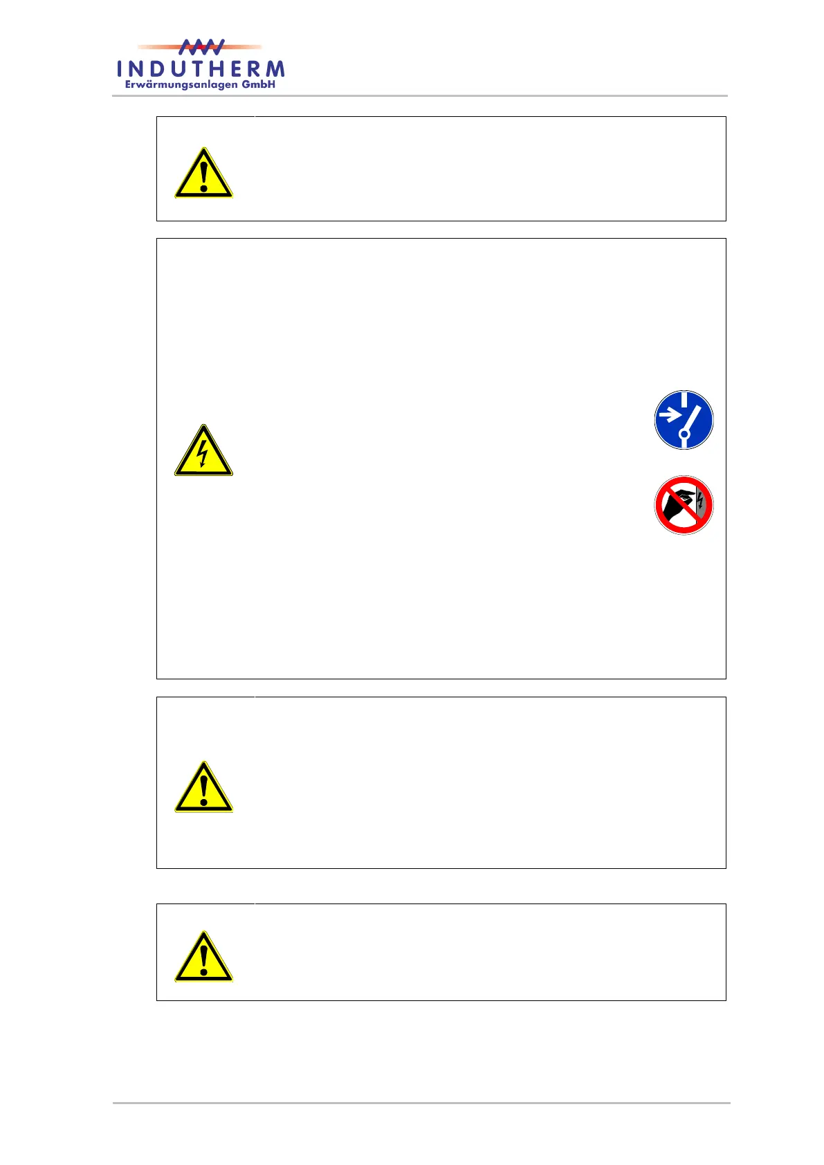 Danger because of touching parts conducting voltage.