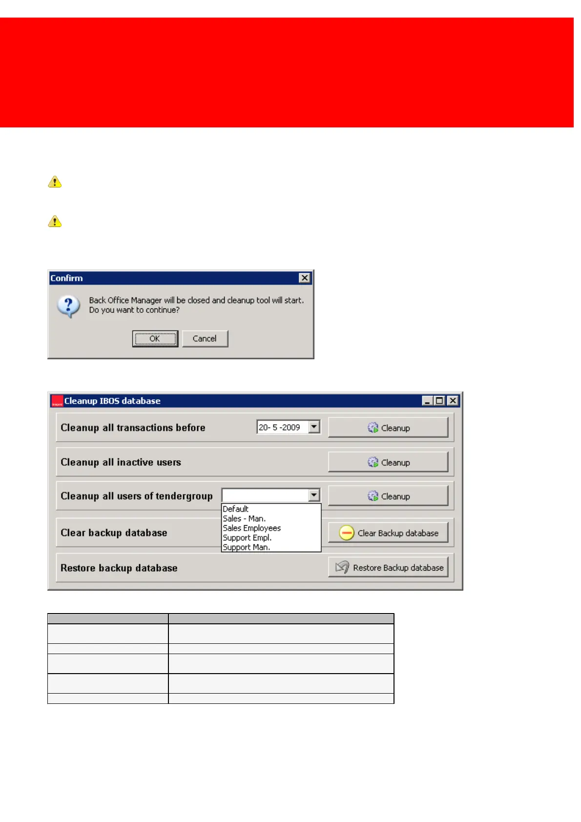 When the Cleanup Tool is started from the Inepro Back Office Manger this window will be shown: