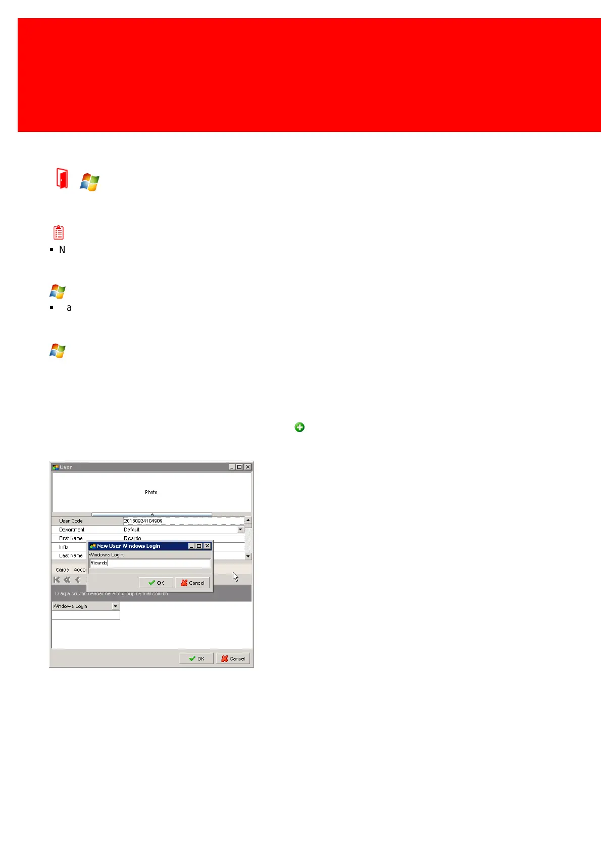 In the User screen four pages are shown at the bottom of the User Detail screen, the last page is labeled 'Windows Login