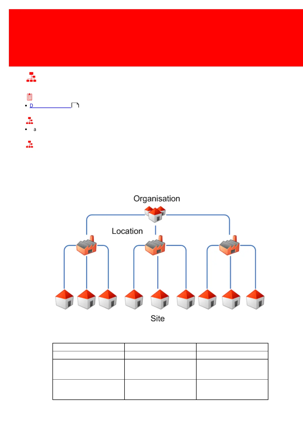 started or when either the 'Organisation', 'Location' or 'Site' option is chosen directly the organisational structure can be