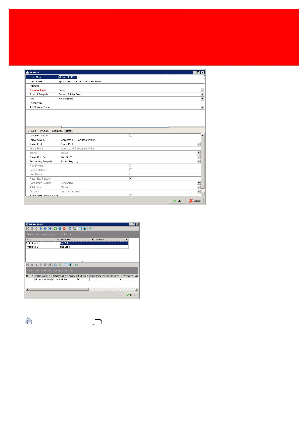 Go to the printer or multifunctional in the DocuPRO devices and link the printer pool to the printer.