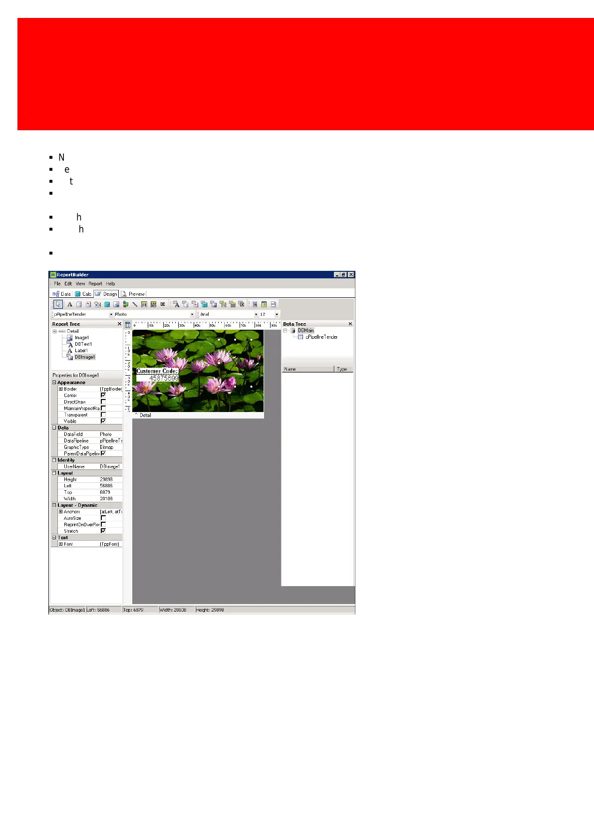 Create a label. It now has the same font and size as the 'DBText' object. Set the label text to 'Customer code:' and place