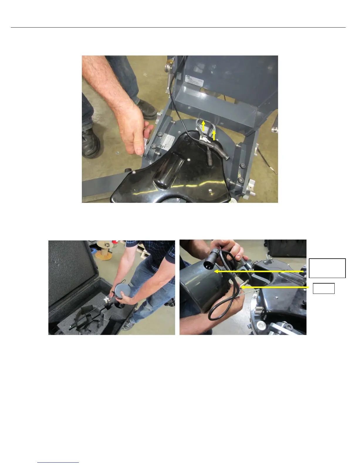 5) Install EL Feed Arm Support plate on the AZ base assembly; ensure the cables (POL and Coax)