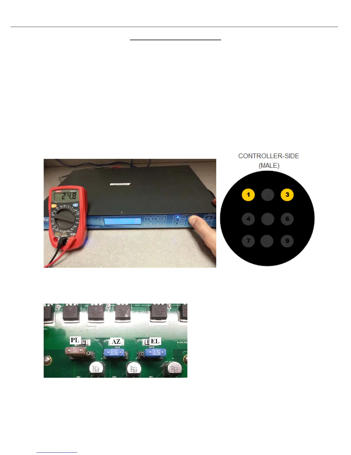 controller, place the volt meter leads on pins 1 and 3 of the controller. Using the 7000 controllers