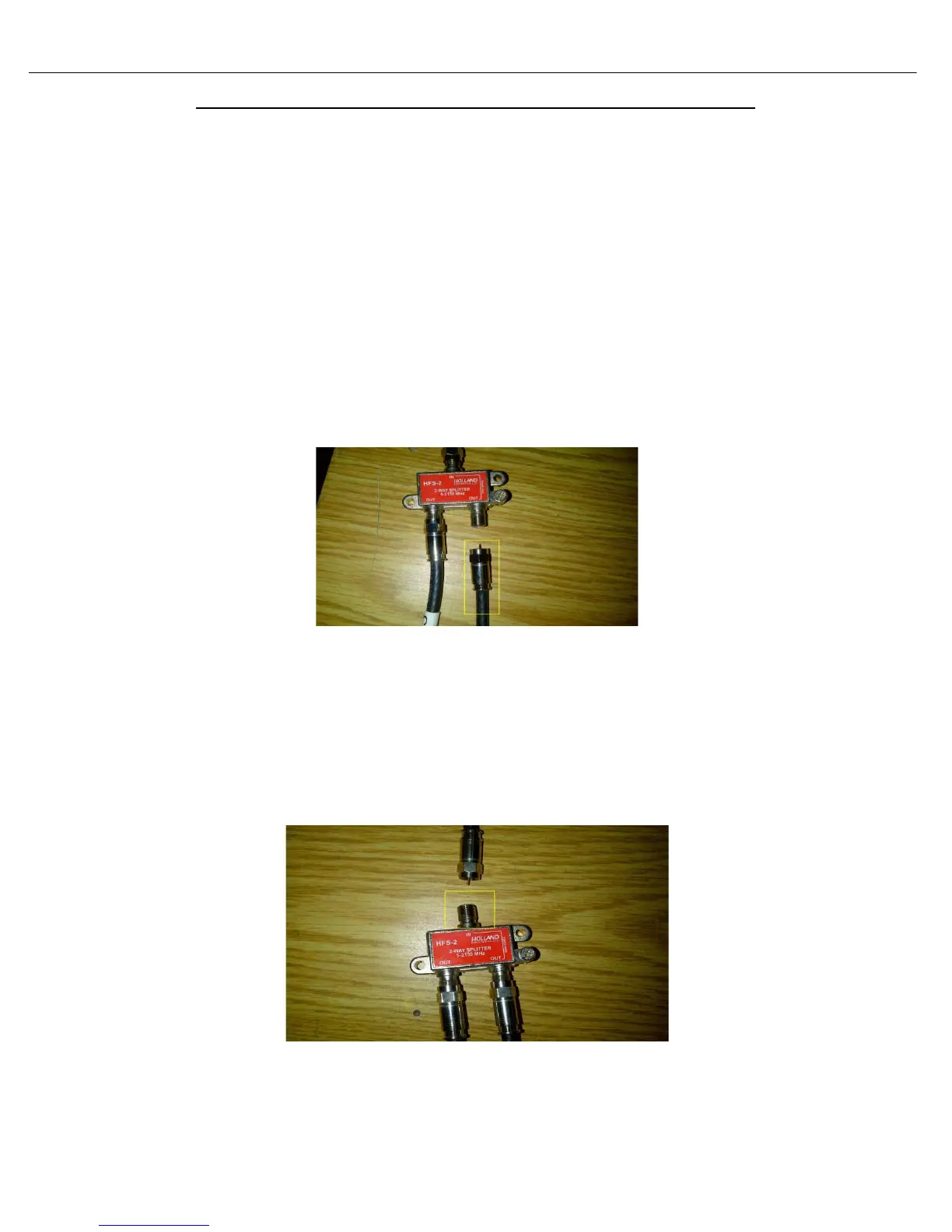 • Disconnect the coax going into the “IN” port of the splitter as shown below.