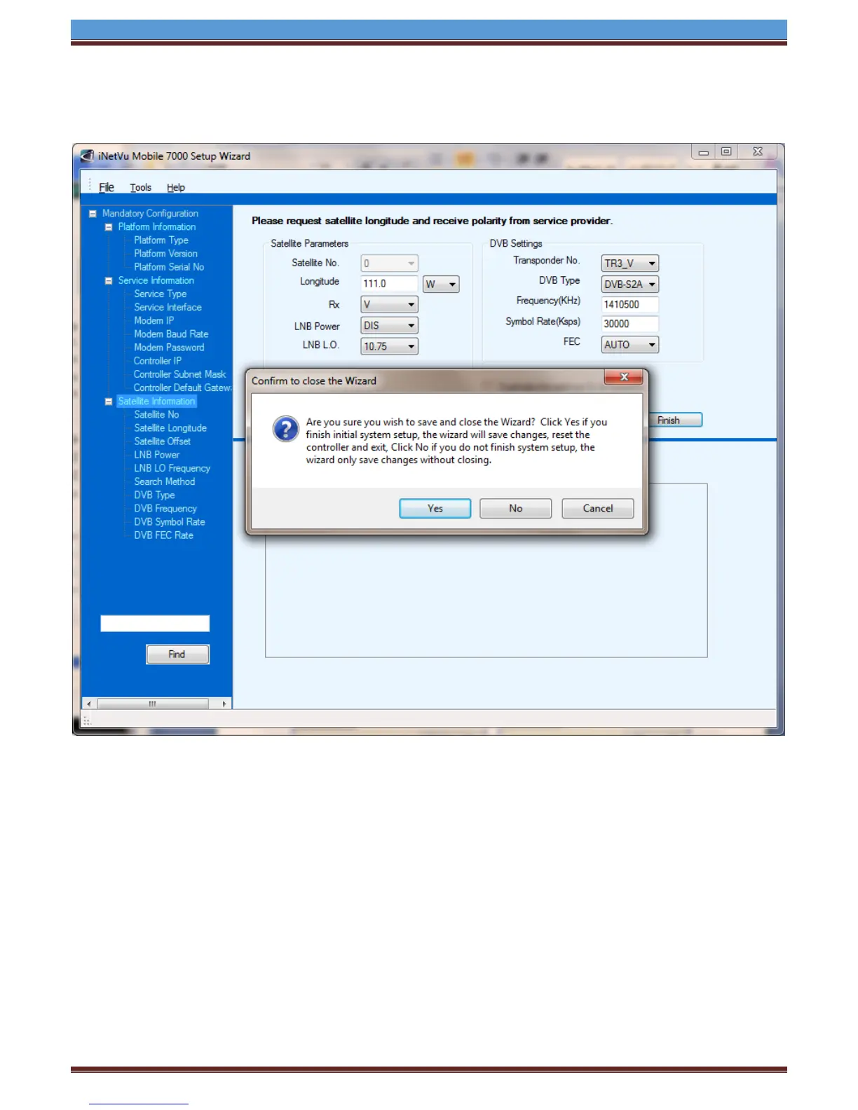 9. Congratulations you have configured your iNetVu Controller. You can now find satellite by