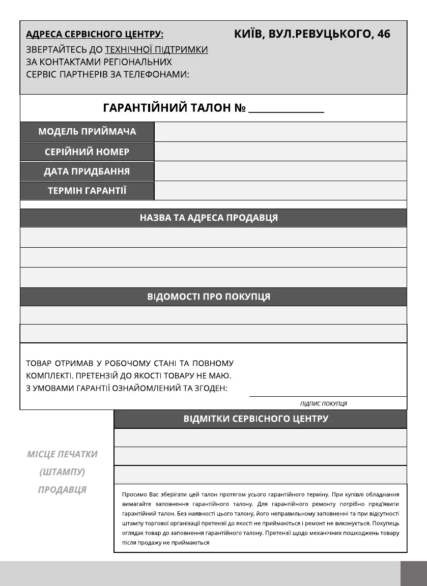 ГАРАНТІЙНИЙ ТАЛОН