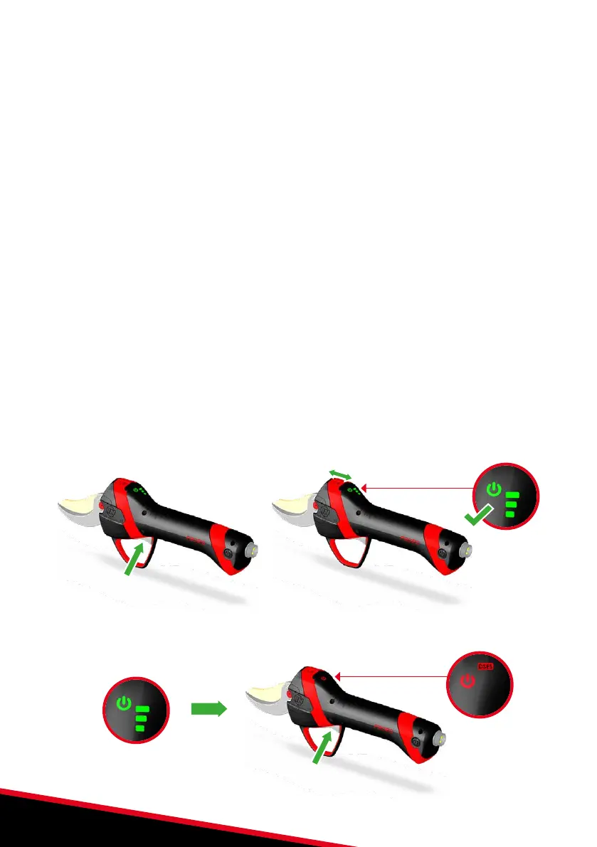 The "DSES check" function is carried out when the pruning shears are in standby mode and