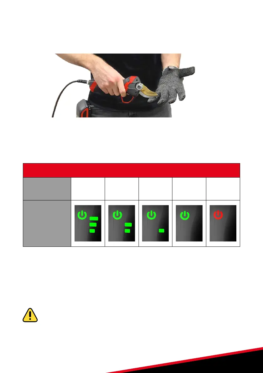 or ungloved hand. The calibration is complete. The pruning shears switch back to
