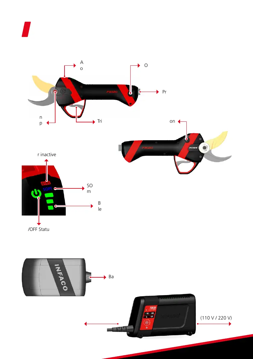 infaco F3020 - General Product View; F3020 Pruning Shears Overview; L100 B Battery and Charger