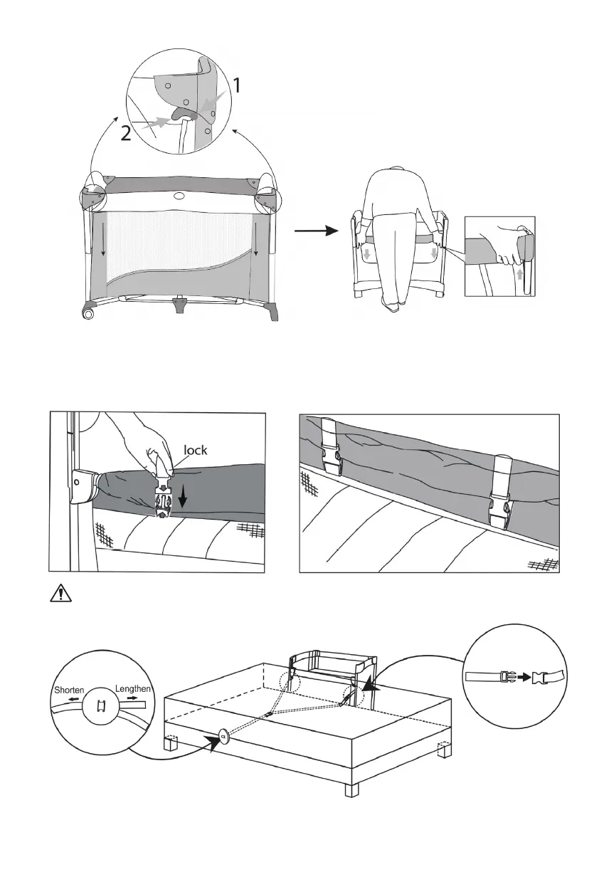 the pockets. Pull strap up and over lowering rail and connect on front of lowering rail.