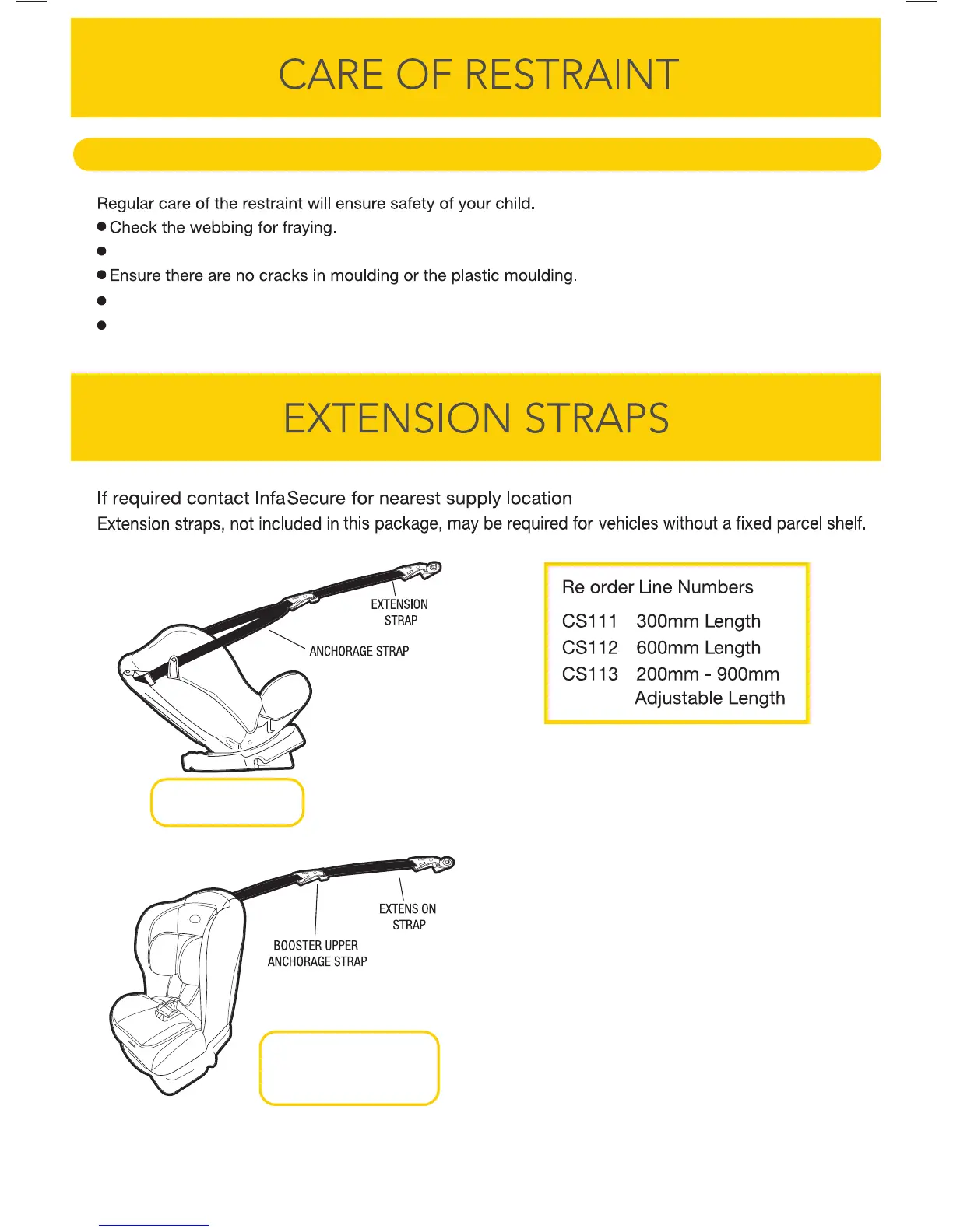 Infasecure CS4310 - Cleaning; Care and Maintenance; Extension Straps