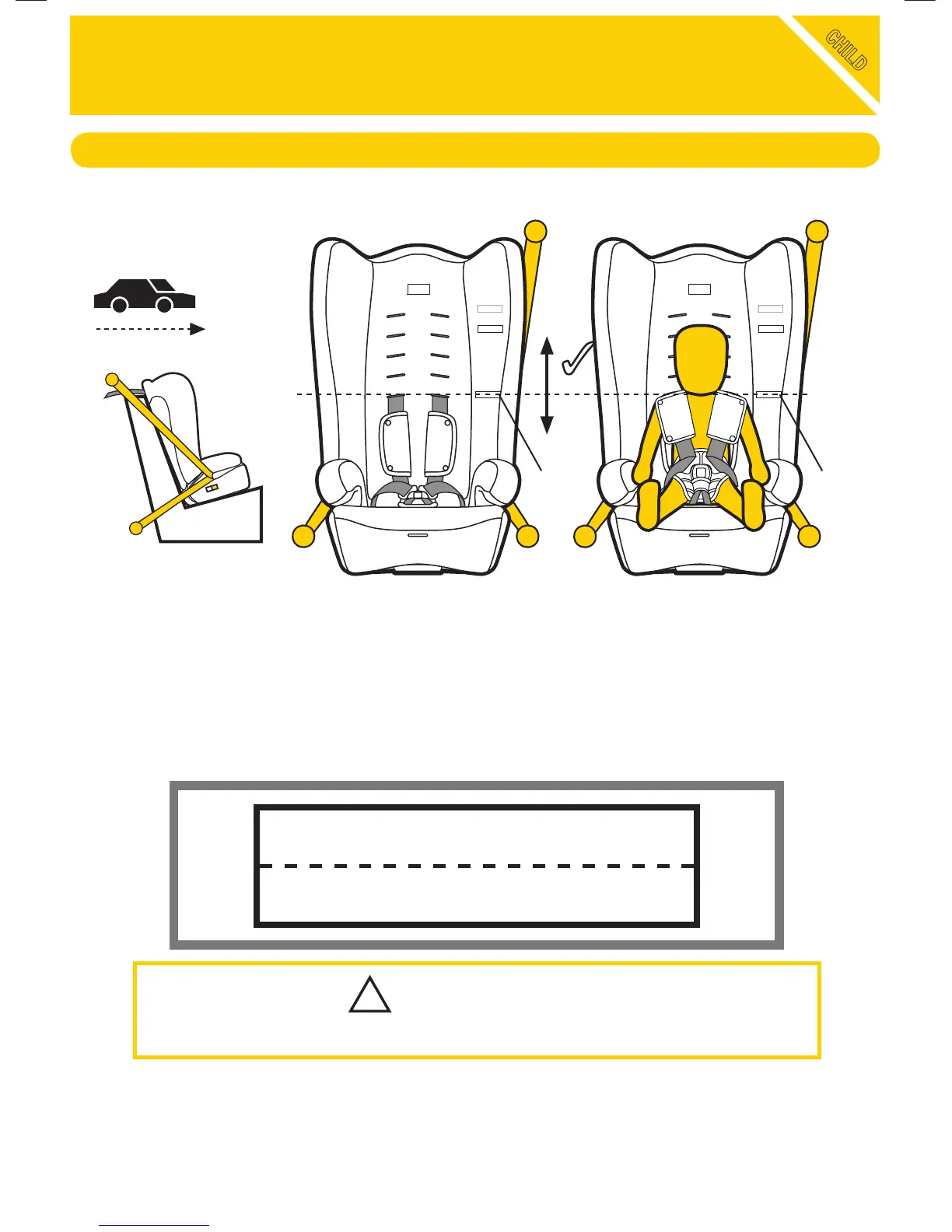 Do not use as a forward-facing child restraint until the child’s shoulders are above the lower