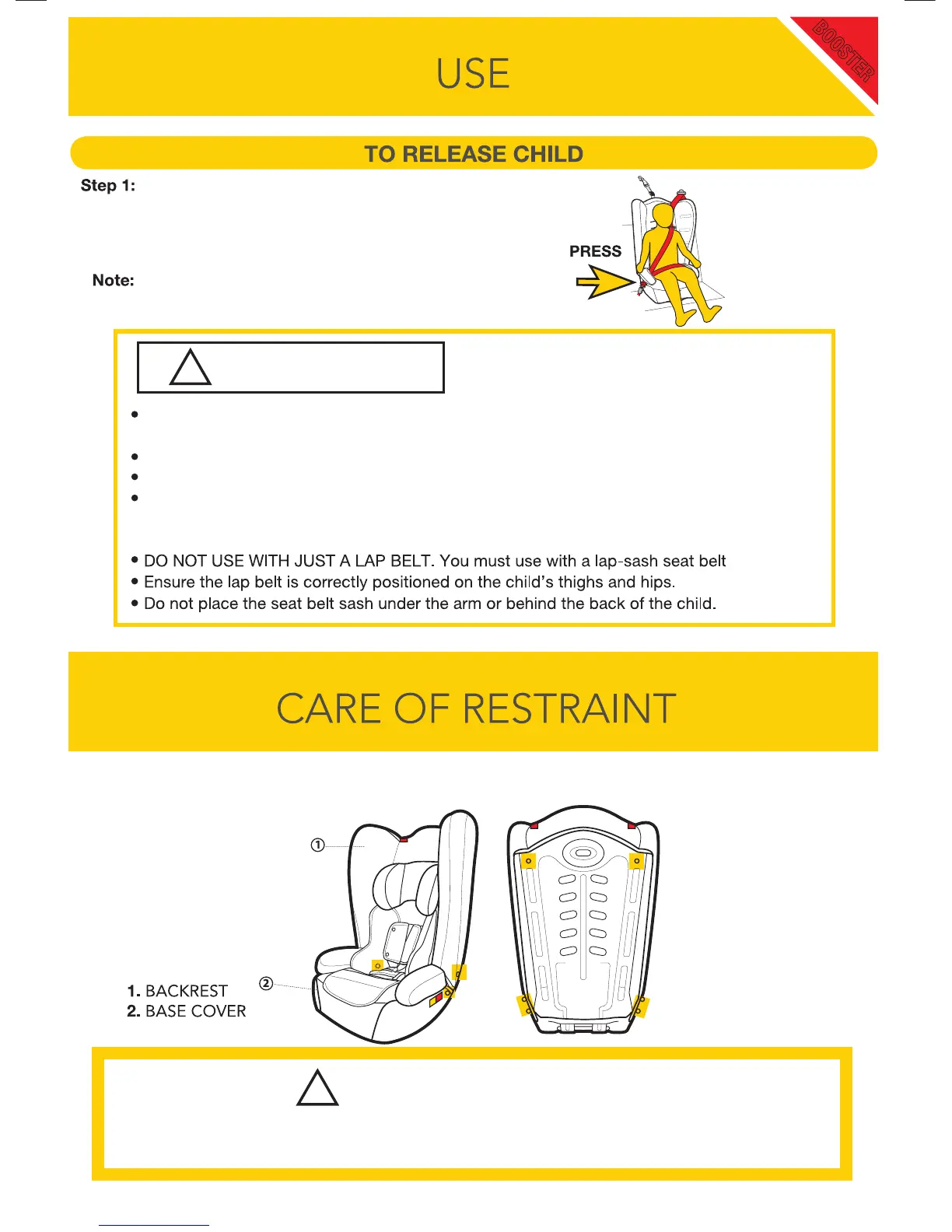 Only use this child restraint with the cover supplied or a manufacturer-
