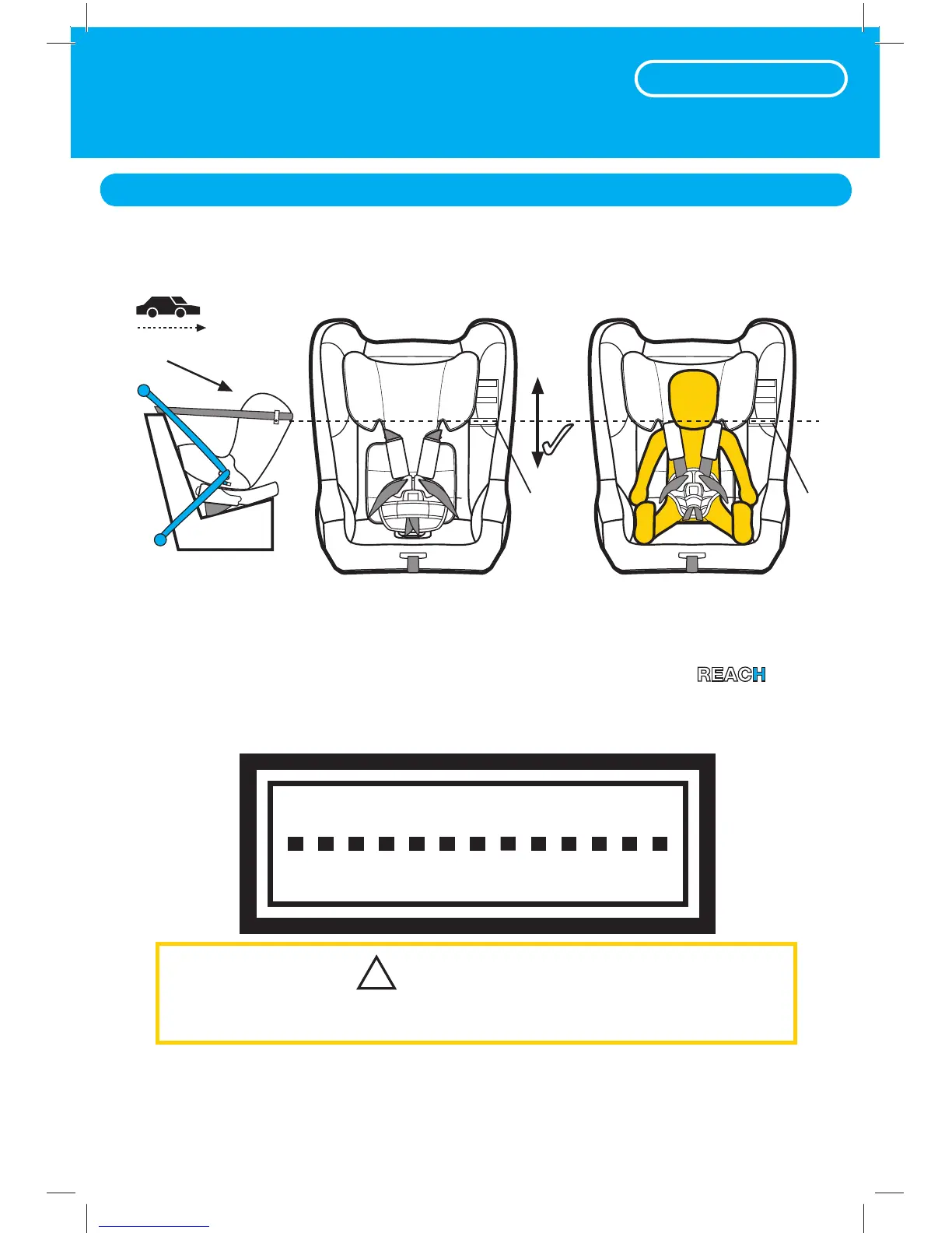 Shoulder height markers are provided on this restraint for a visual indication that the child is safe to travel in this restraint.