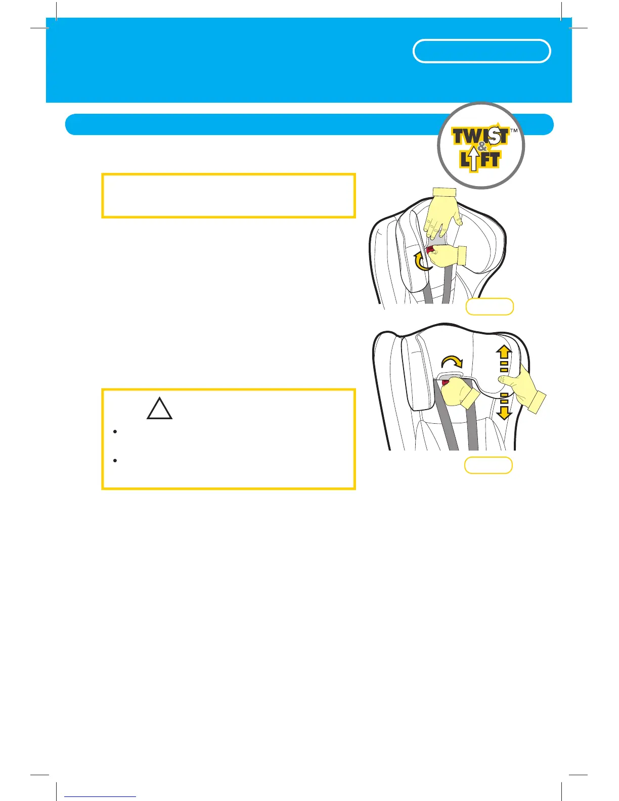 To adjust the headrest, lift the “TWIST & LIFT” ap
