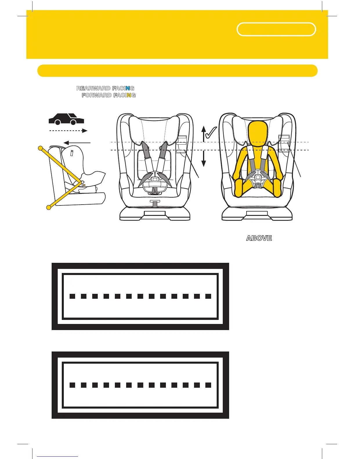 • Change to FORWARD FACING until the upper shoulder height marker is reached (approx 4 years old).