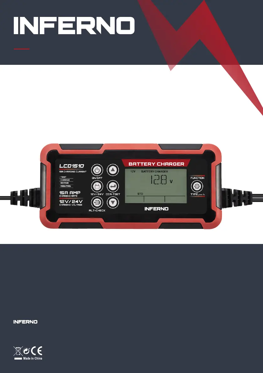 If the Inferno Battery Charger displays 'ERROR + REVERSE POLARITY', it means the clamps are connected with reverse polarity. To fix this, exchange the red and black clamps to the correct battery posts.