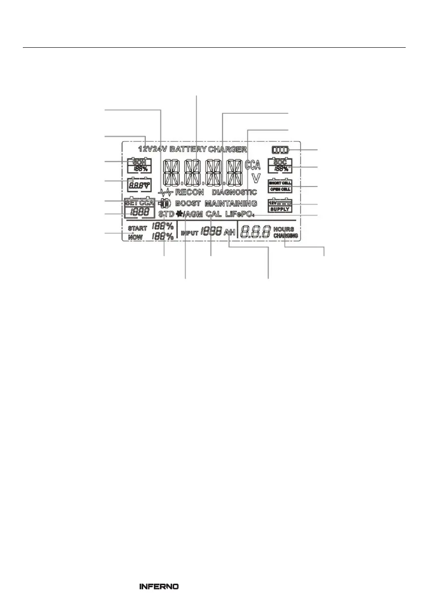 Display for CCA-deteksjon/batterispenning/batterifunksjon