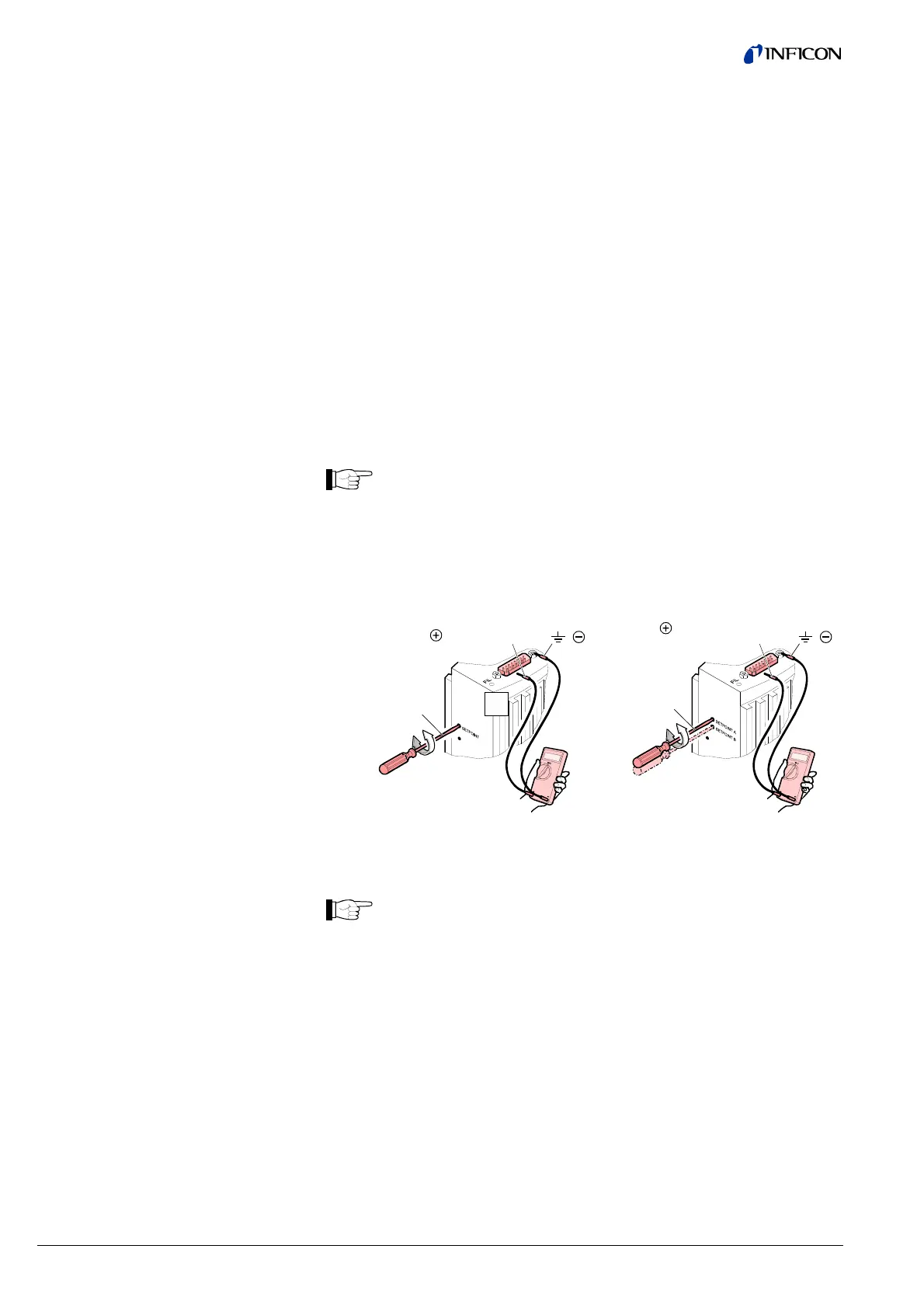 Connect the – lead of the voltmeter to a ground contact nearby (e.g. locking