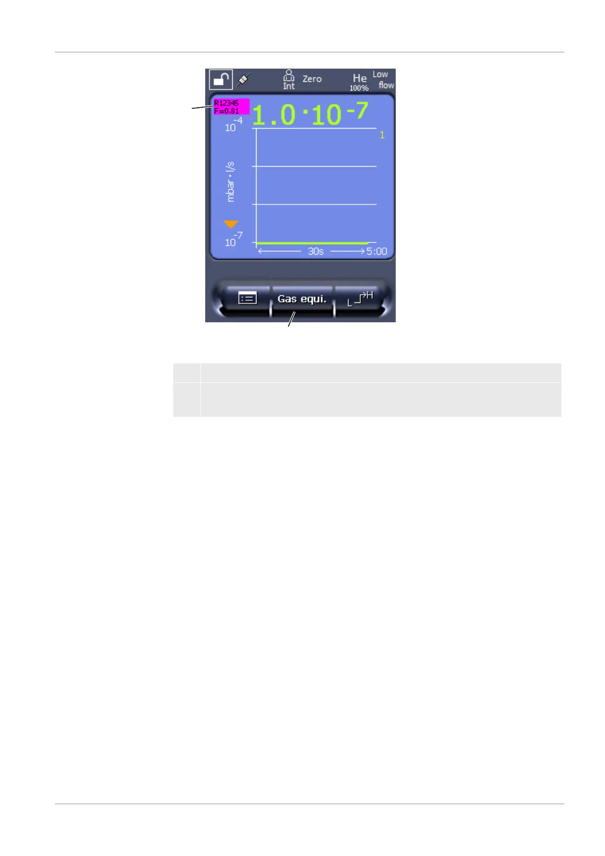 Fig.7: Measurement screen with displayed equivalence leak rate and configured favorites key