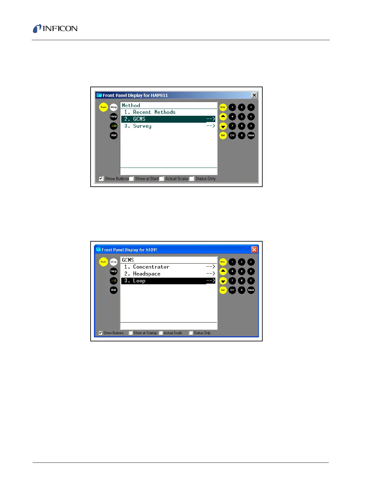 SEL. After selecting the GCMS option the following menu will be shown. See