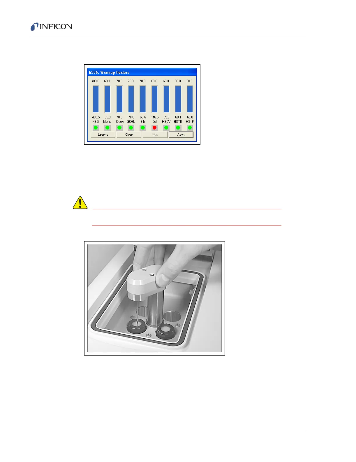6 Wait for the heaters to reach the set temperatures (see Figure 5-50).