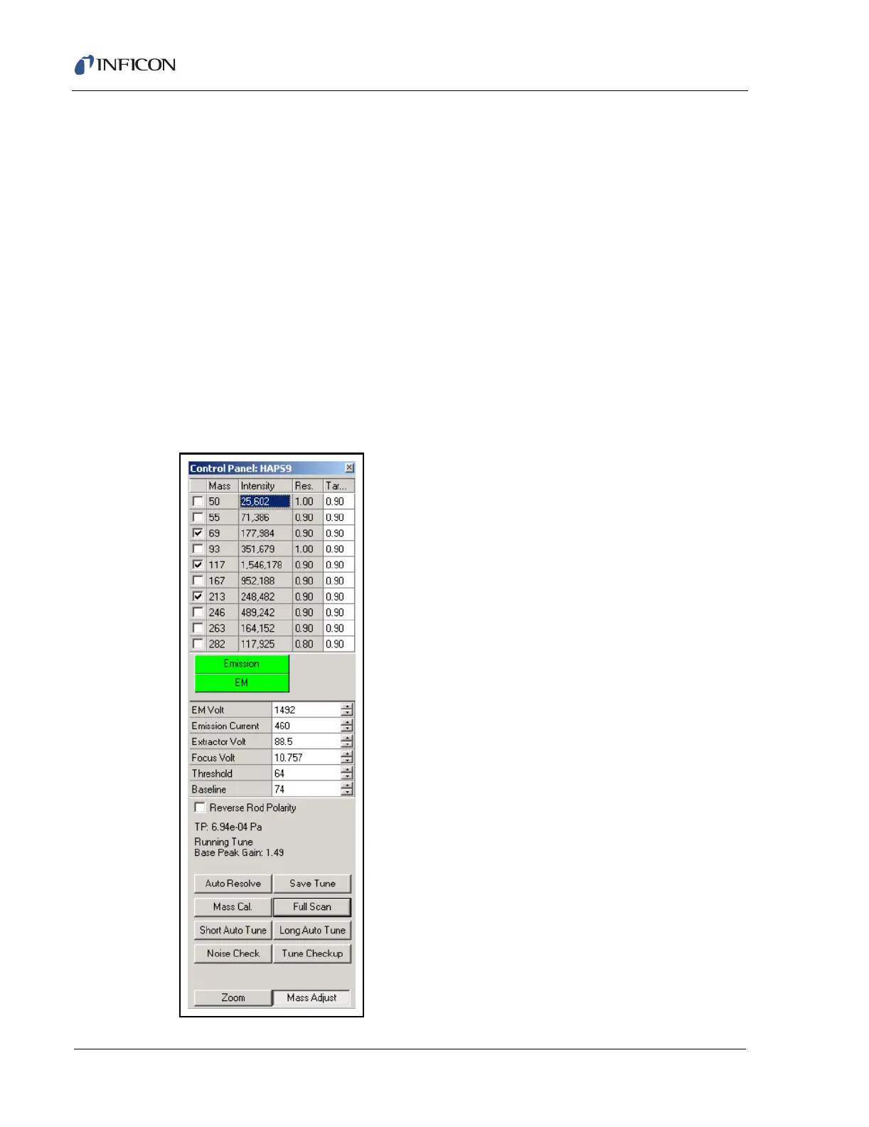 Show Target . . . . . . . . . . . . . . . . . . Displays the target bar for the mass peak