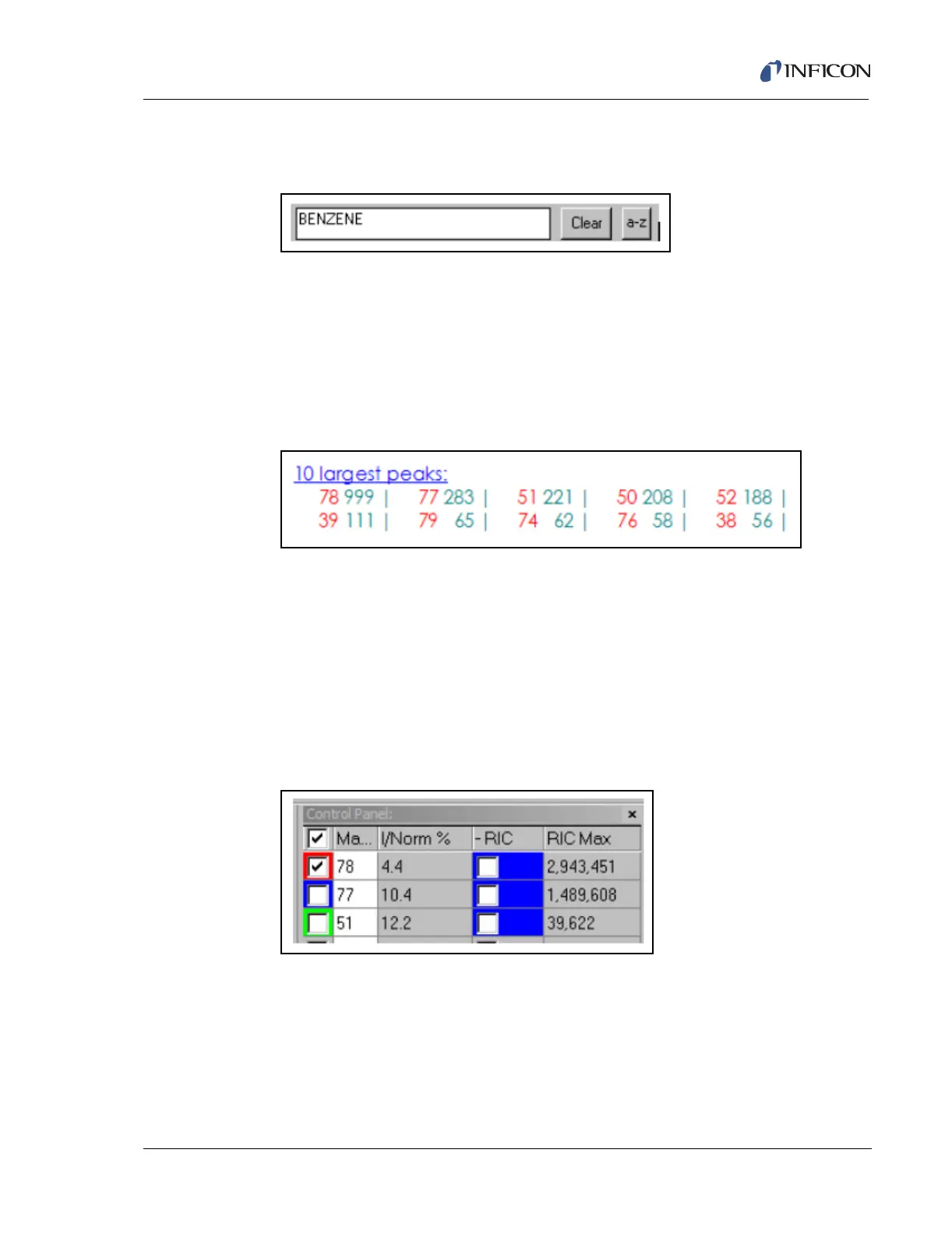 7 Enter the 3 largest peaks, from the compound in step 5, in the control panel