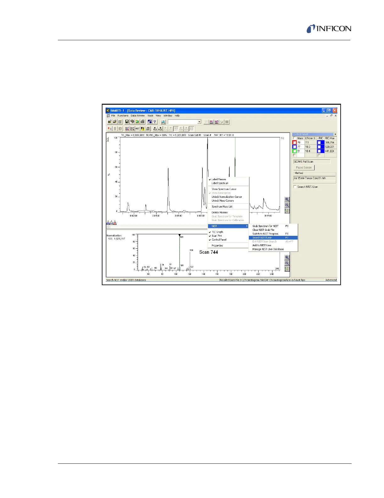 1 Click the cursor on the TIC of interest in the TIC window