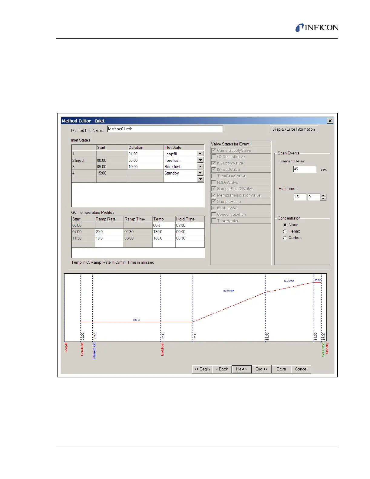 Figure 11-10 Method Editor Inlet Page for GC/MS Full Scan