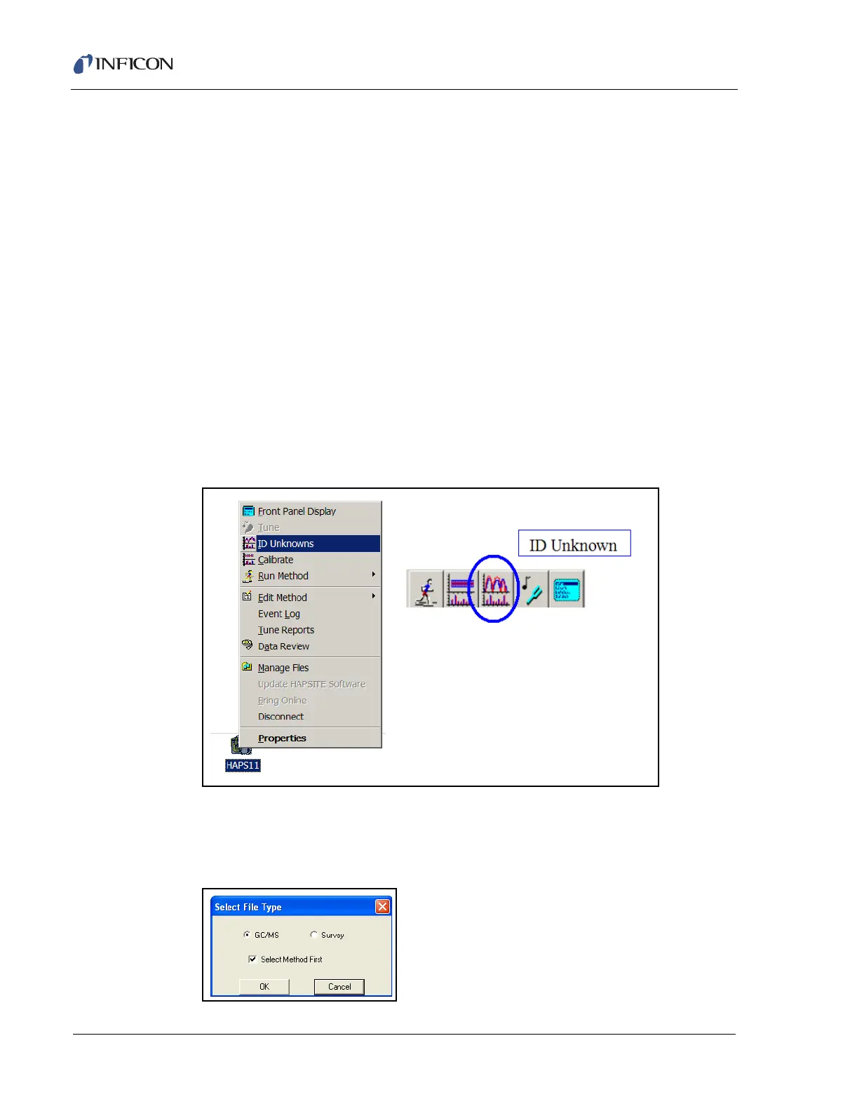 menu, by clicking the right mouse button on the HAPSITE icon, by the toolbar