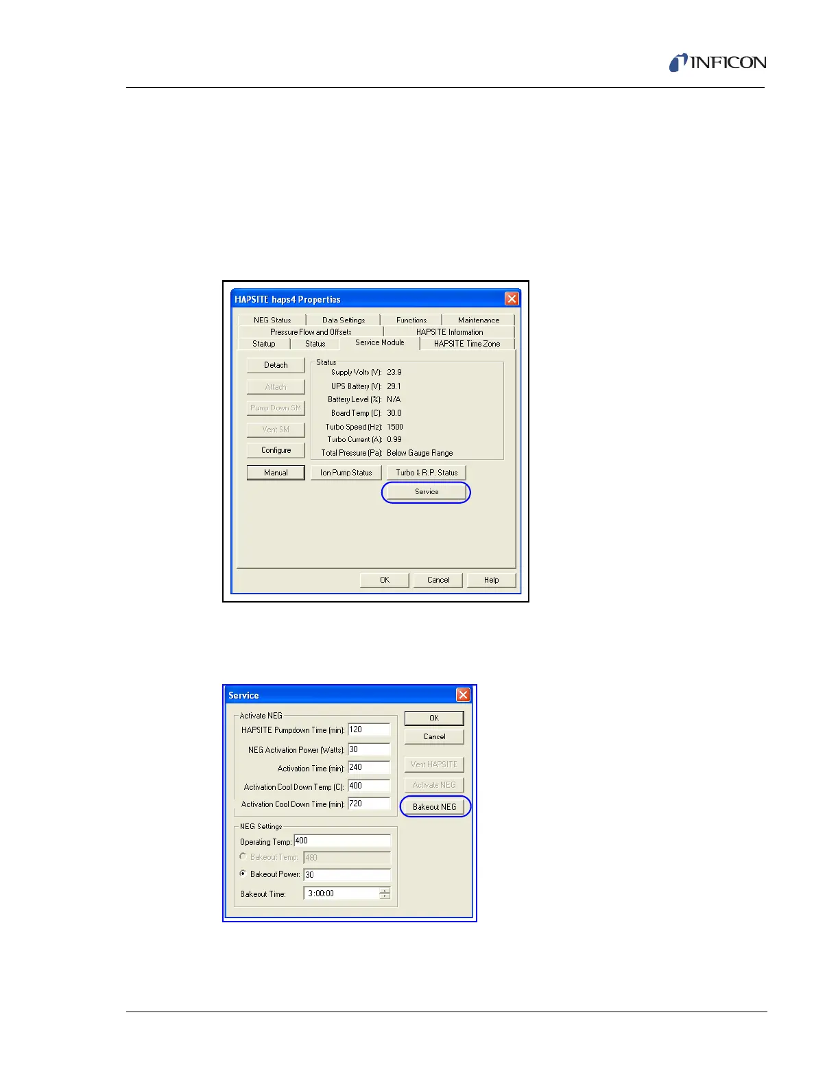 Figure 15-8 Service Button on the Service Module Tab