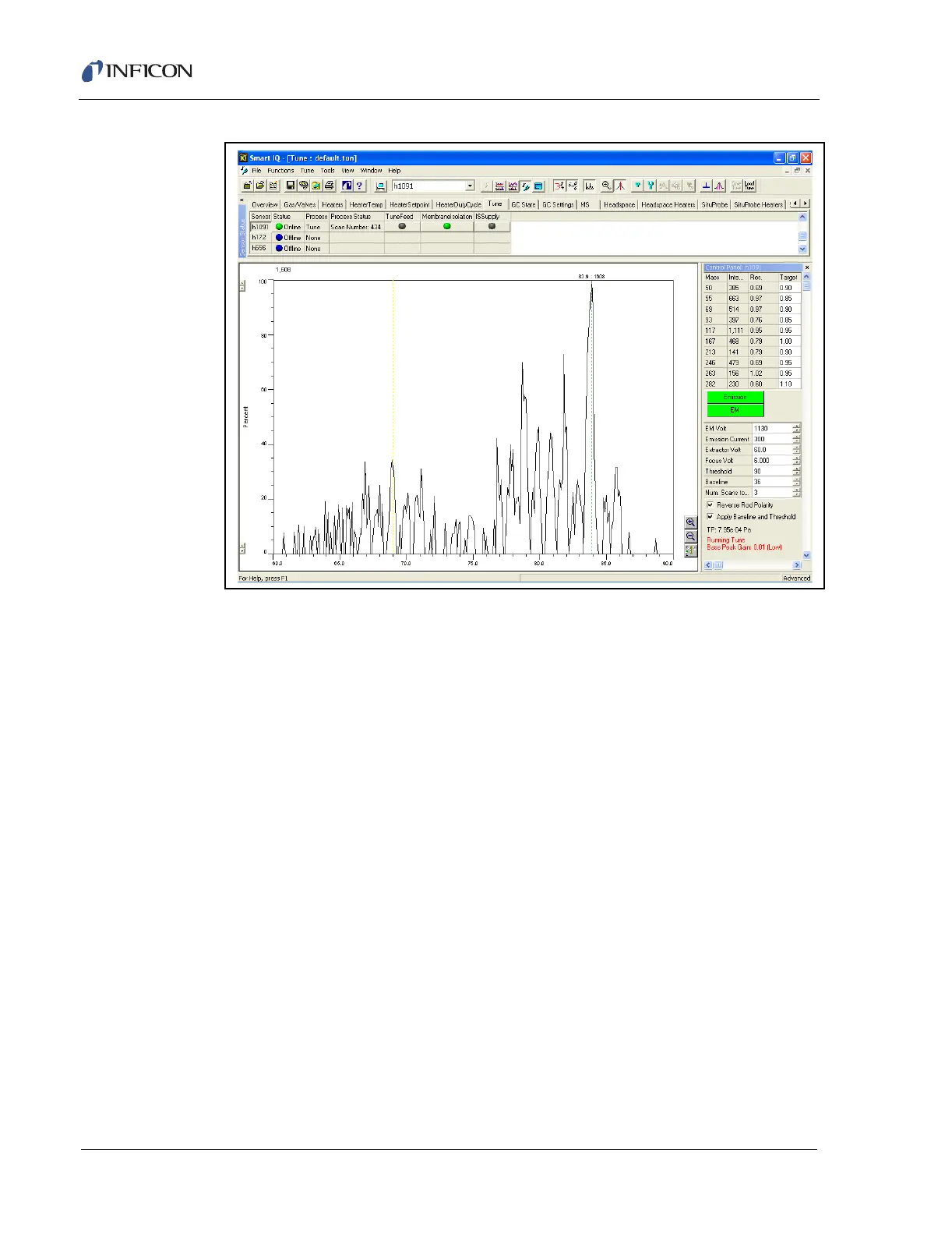 If there is a leak, the response for the 69 and 83 masses will increase. See