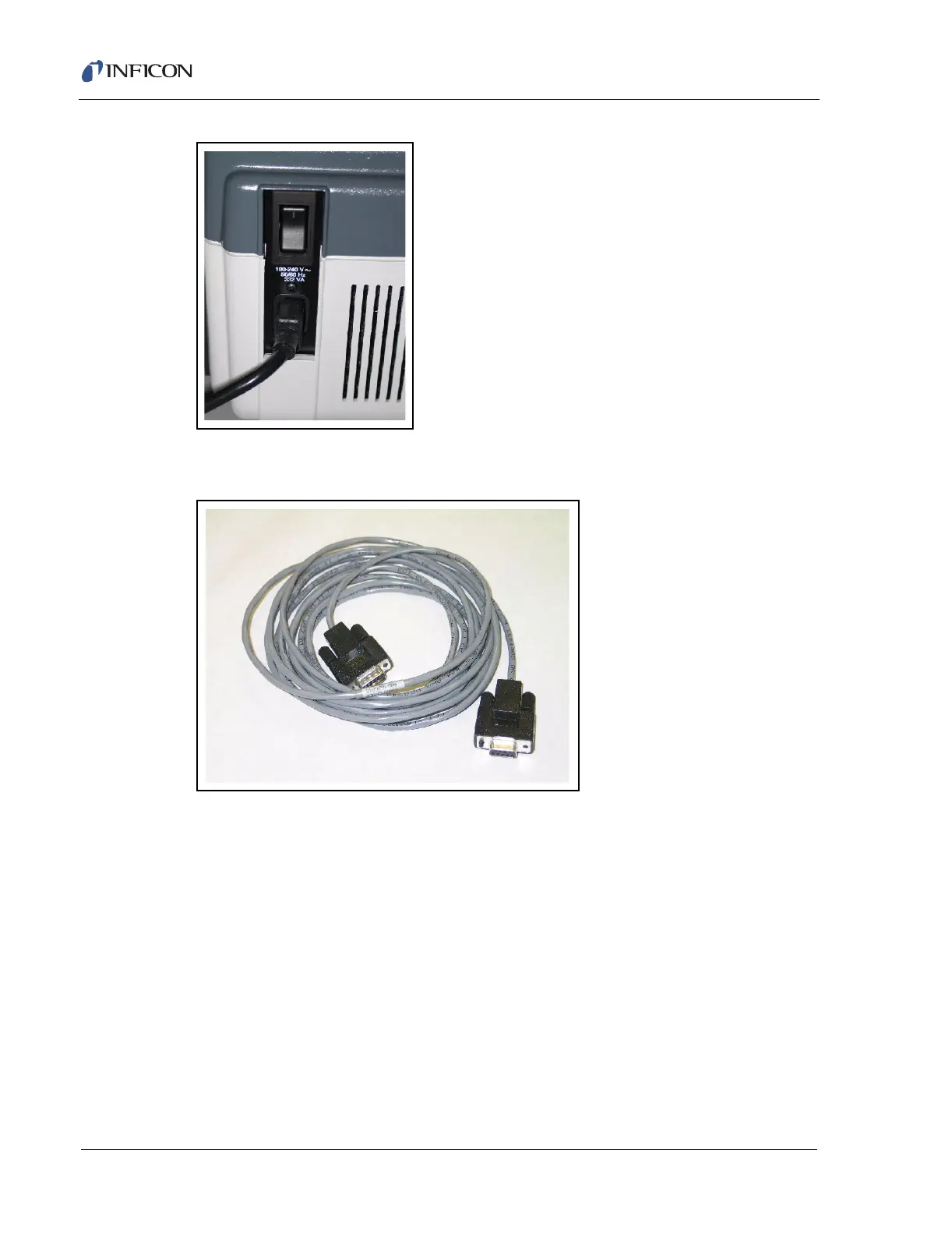 Attach the RS232 communications cable to the Service Module, as shown in