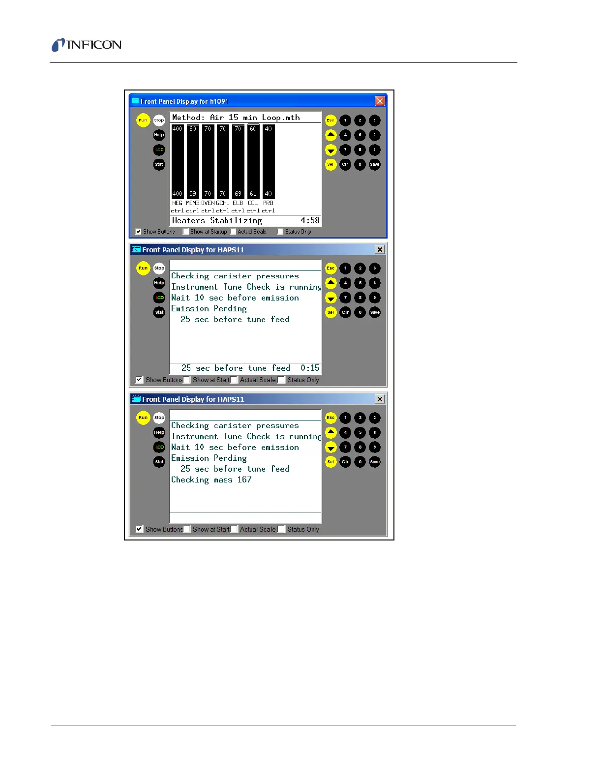 Figure 3-4 Front Panel Display Checking Pressures, Heating and Tuning