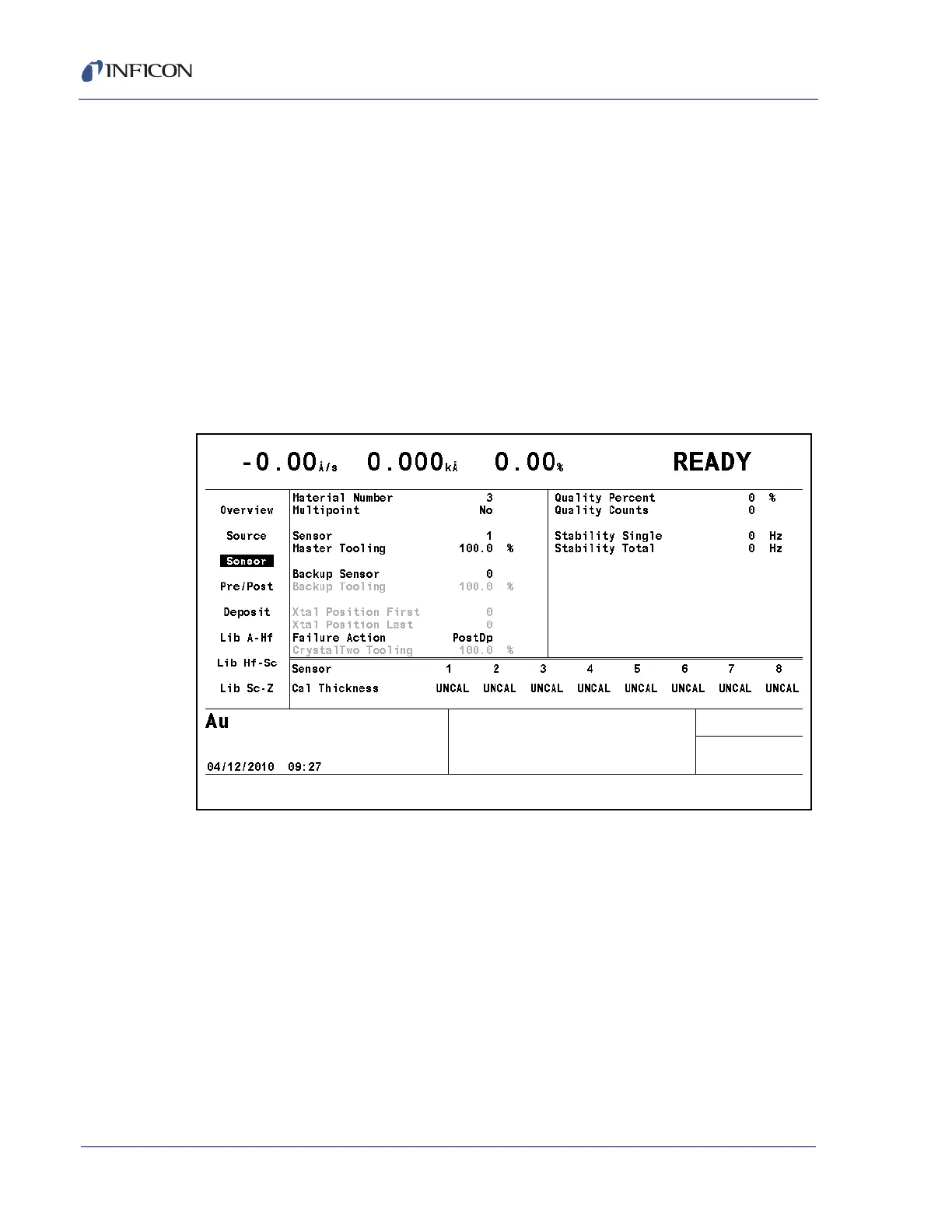 Figure 3-13 Material sensor page