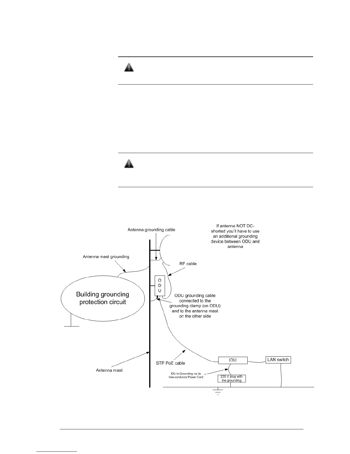 Antenna pole, tower, ODU and lightning arrestor should be connected
