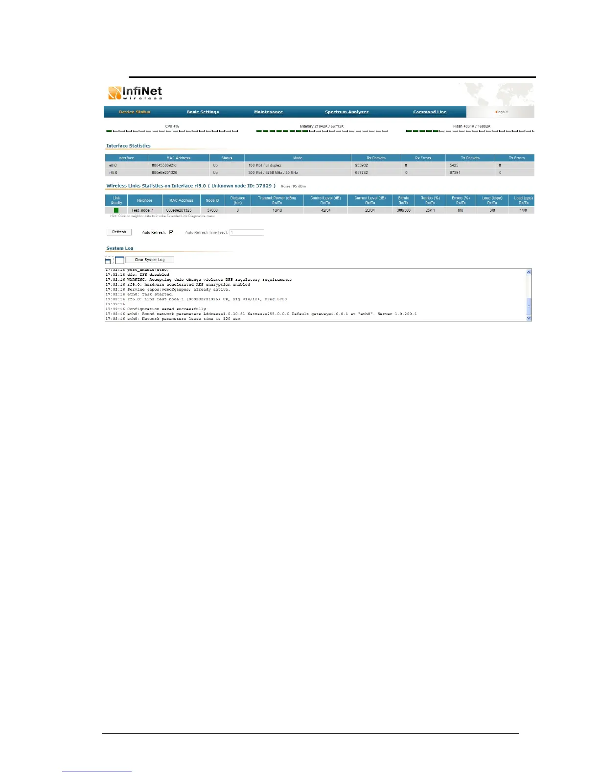 The “Wireless Links Statistics” section displays all neighboring devices which the