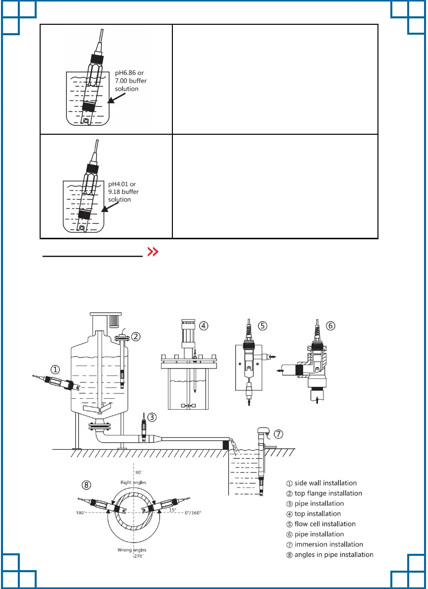 If electrode is installed in the pipe, the right angle should be 15°~165°.