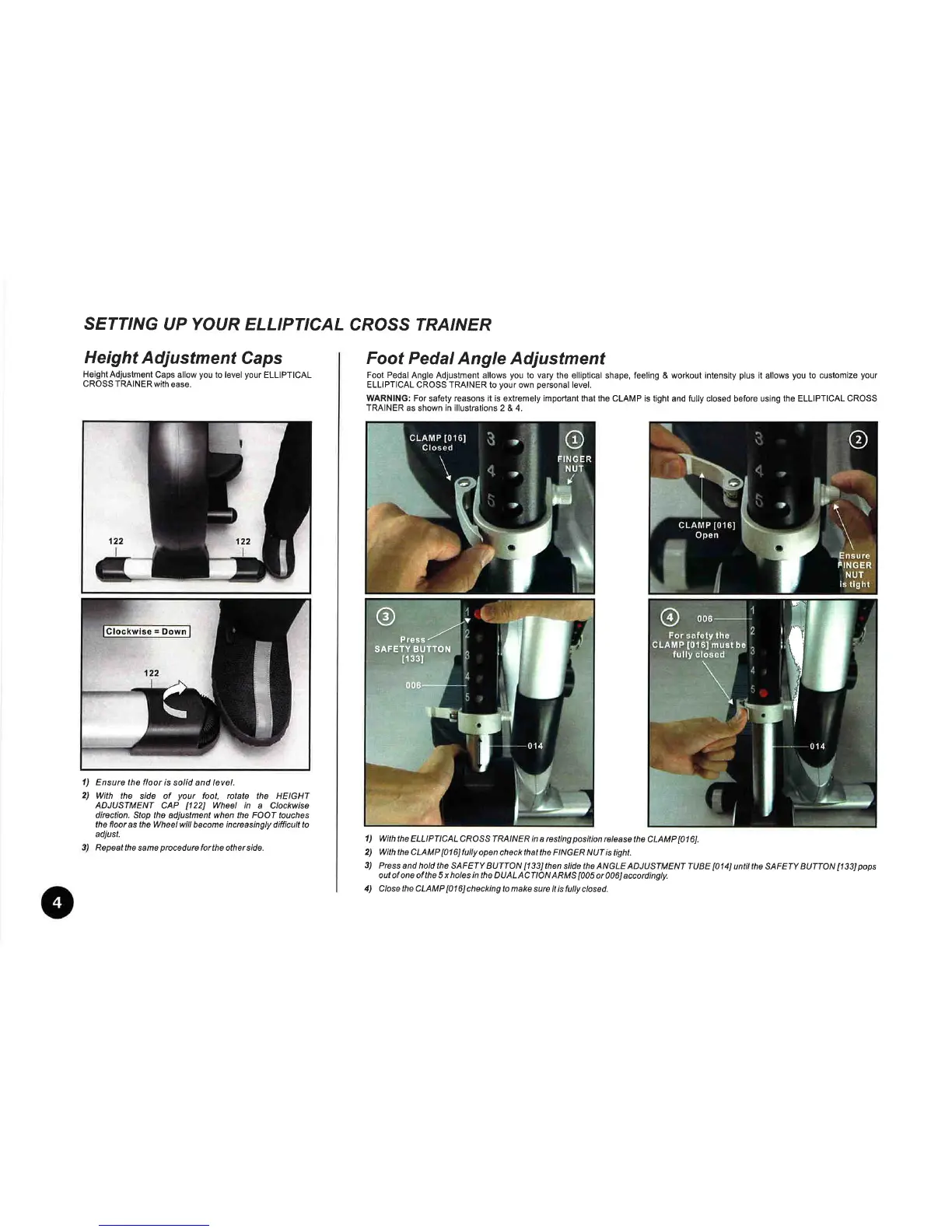 Infiniti Direct Q21 - Setting Up and Using the Trainer; Height Adjustment Caps; Foot Pedal Angle Adjustment