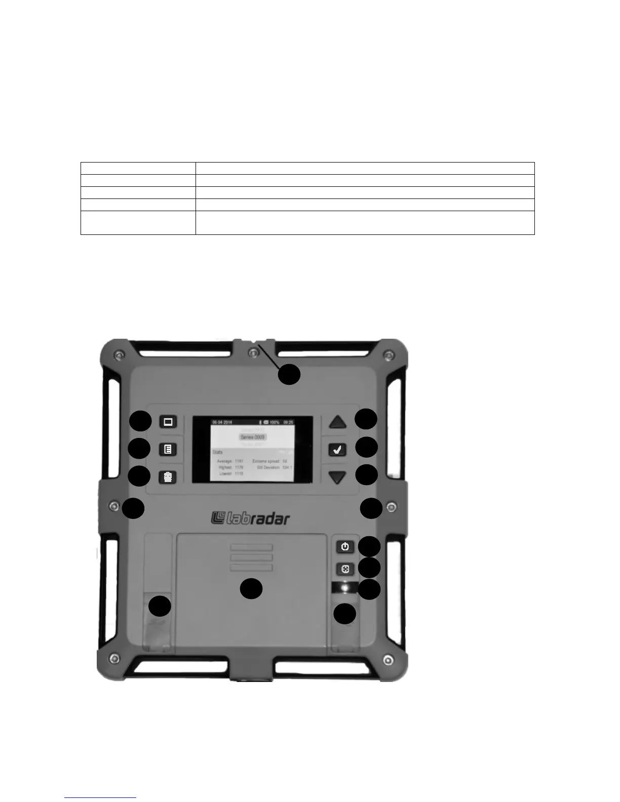 The LabRadar is equipped with an array of buttons each used for a different function: