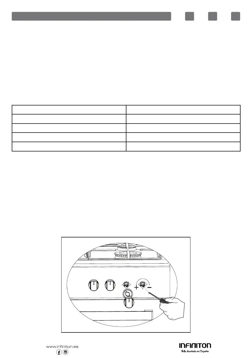 Ajustar rodando o parafuso no meio das torneiras do gás com uma chave