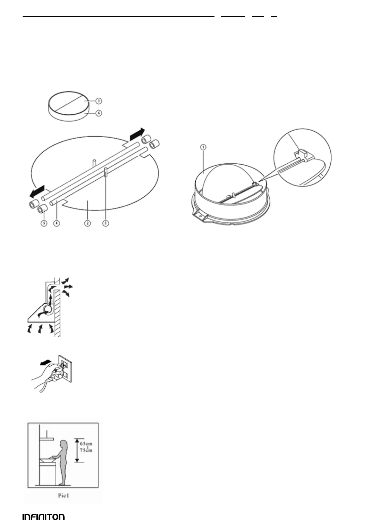 2. The cooker hood should be placed at a distance of 65~75cm above the cooking surface for best effect.